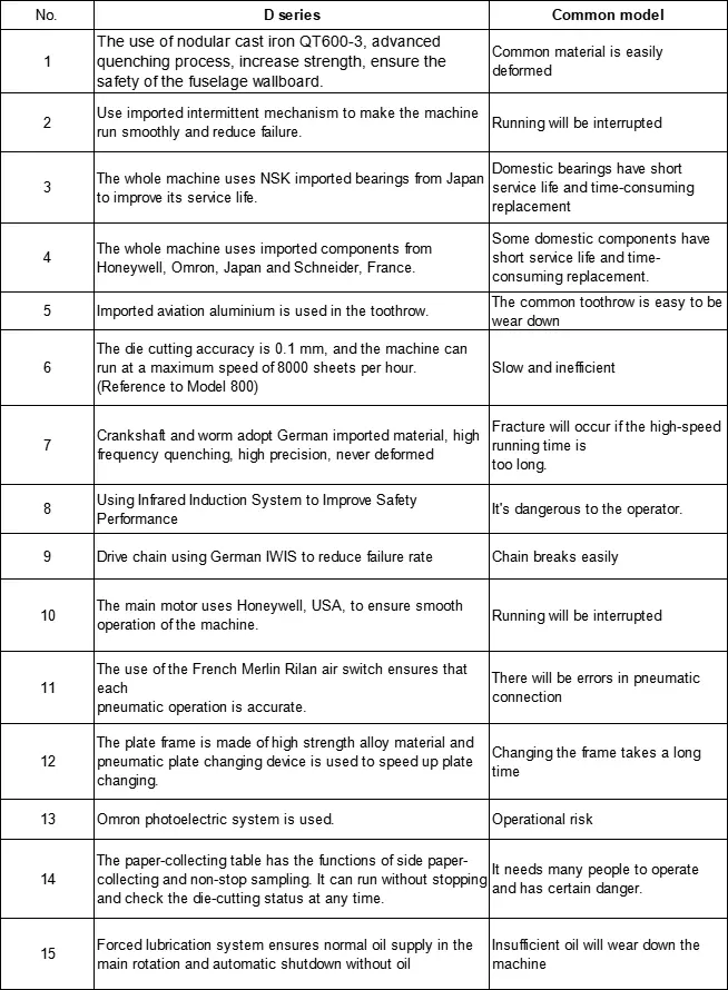 * Menggunakan Motor Utama Honeywell Lanjutan (konfigurasi pilihan), kelajuan pemotongan mati boleh mencapai 7500 helai per jam.