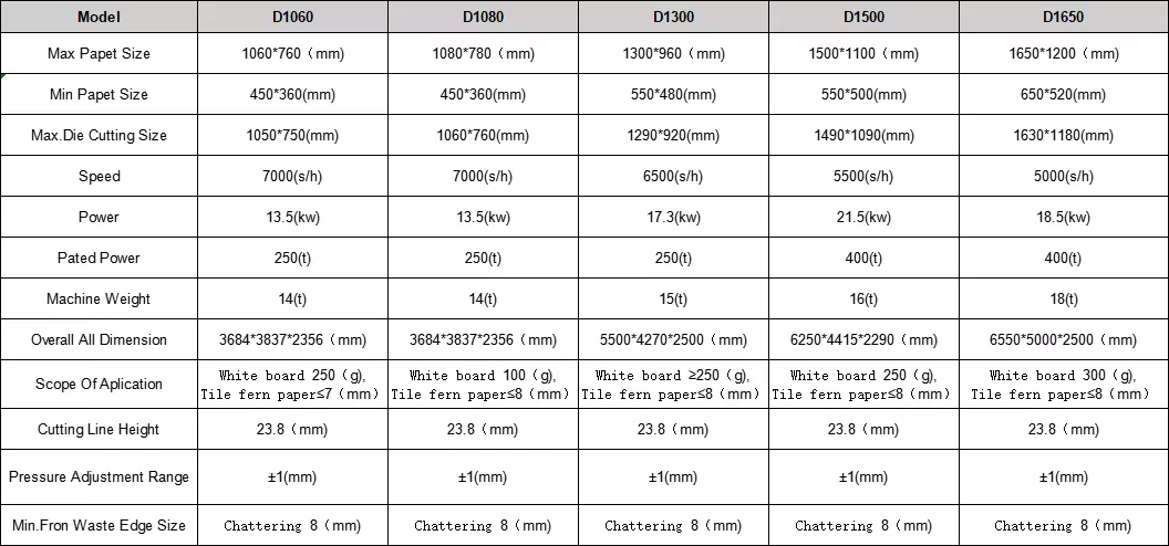 * Menggunakan Motor Utama Honeywell Lanjutan (konfigurasi pilihan), kelajuan pemotongan mati boleh mencapai 7500 helai per jam.