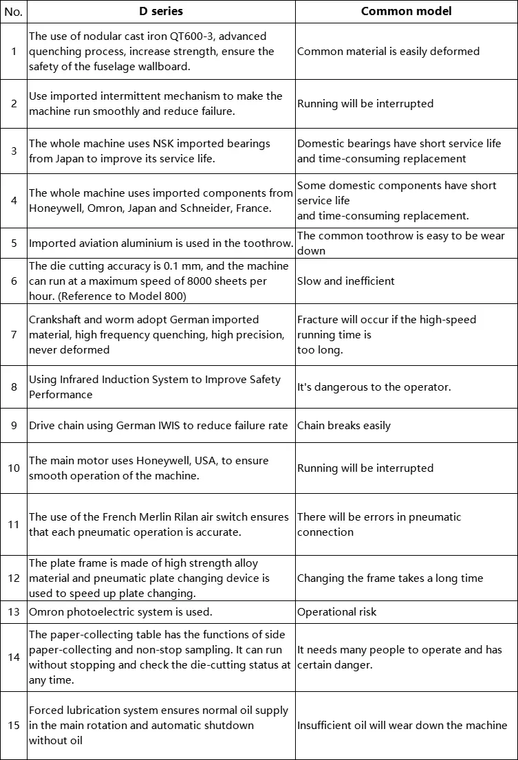* Menggunakan Motor Utama Honeywell Lanjutan (konfigurasi pilihan), kelajuan pemotongan mati boleh mencapai 7500 helai per jam.